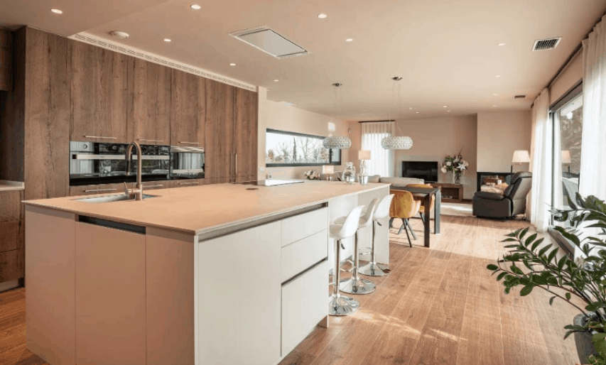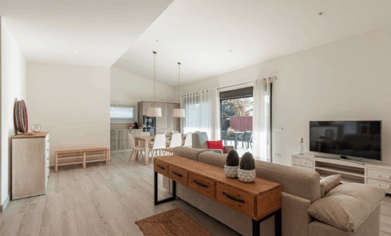 El espacio es un lujo y no siempre necesitamos una casa de muchos metros cuadrados para poder disponer de él. Desde PMP Prêt-à-porter casas apostamos siempre por la creación de espacios diáfanos que faciliten la flexibilidad y la sensación de amplitud en los hogares. Estos días son ideales para replantear la distribución de los espacios comunes como la cocina o el comedor. Tras ordenar la casa (consejo nº1), recomendamos probar si puedes colocar el sofá, la mesa principal o los muebles más grandes de otra forma para liberar espacio. seguro que más que nunca podrás aprovechar los espacios para practicar ejercicios o tener más sitio para que jueguen los niños durante estos días.