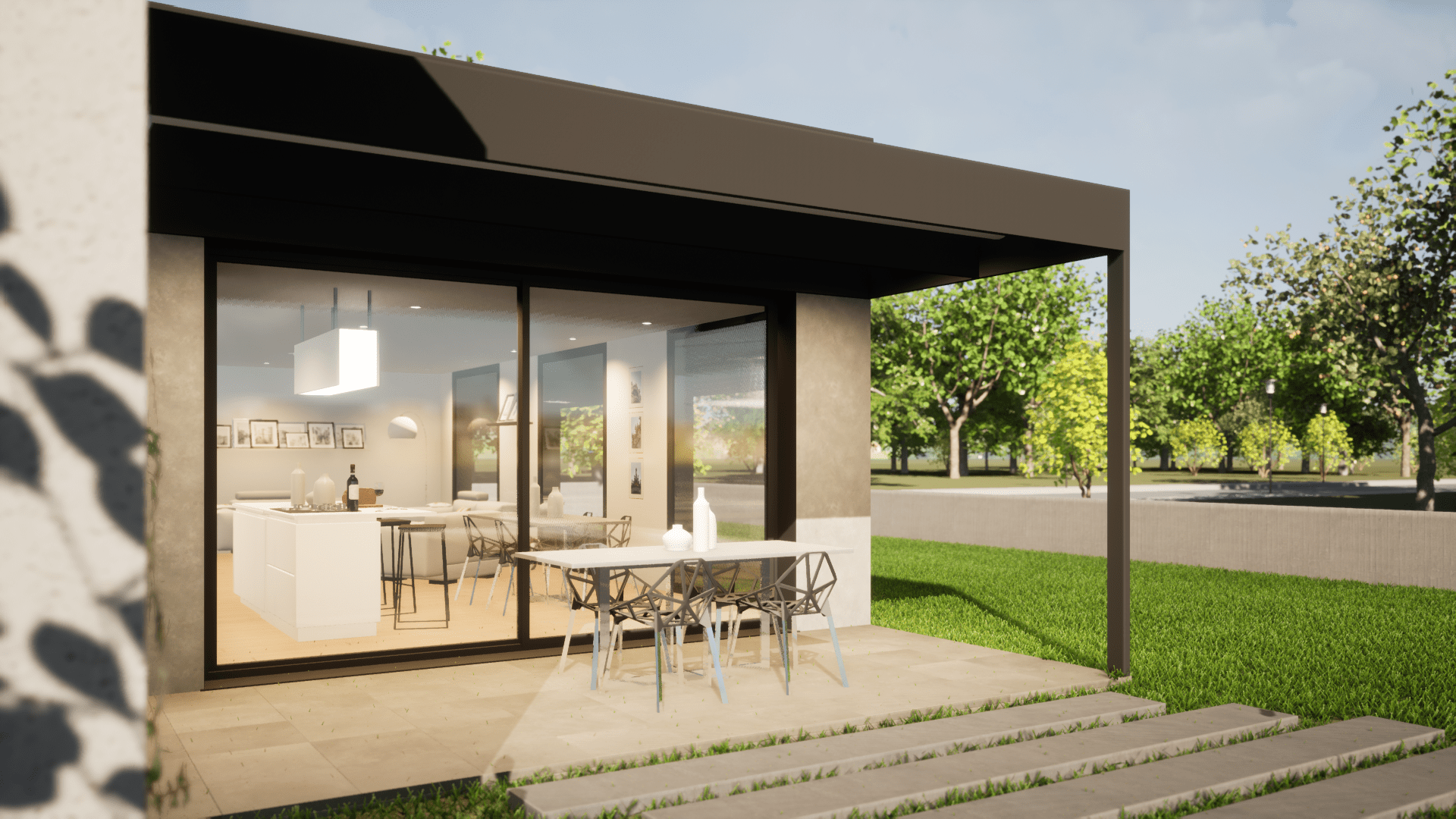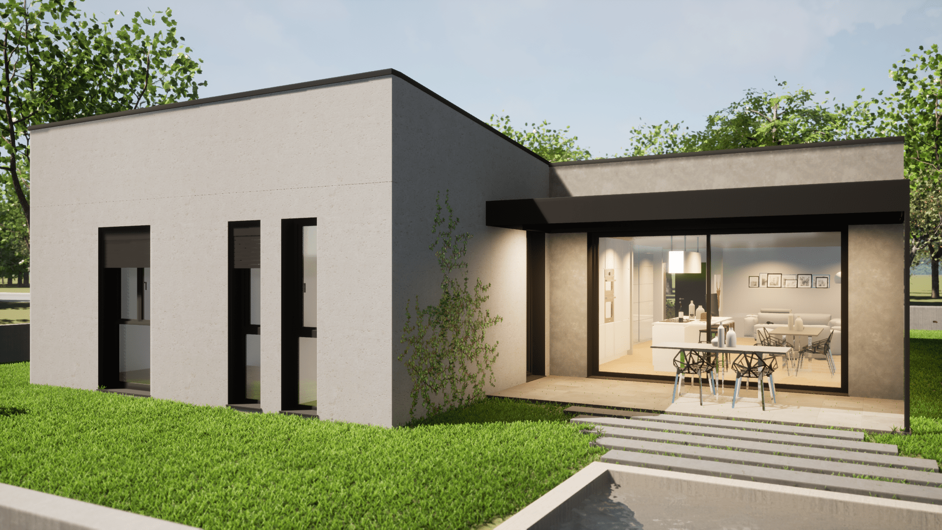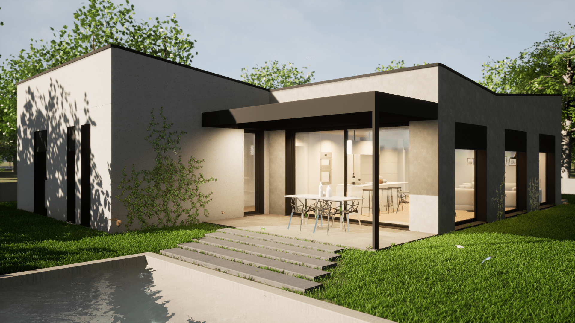 La casa Bellavista és un habitatge distribuït en una planta baixa. La seva forma quadrada proporciona uniformitat i homogeneïtat, el que fa que es pugui integrar fàcilment en qualsevol paisatge. Aquesta casa està distribuïda en 3 habitacions, 2 banys, garatge, grans balconeres i una terrassa. És l’habitatge ideal per a poder gaudir d’espais diàfans.