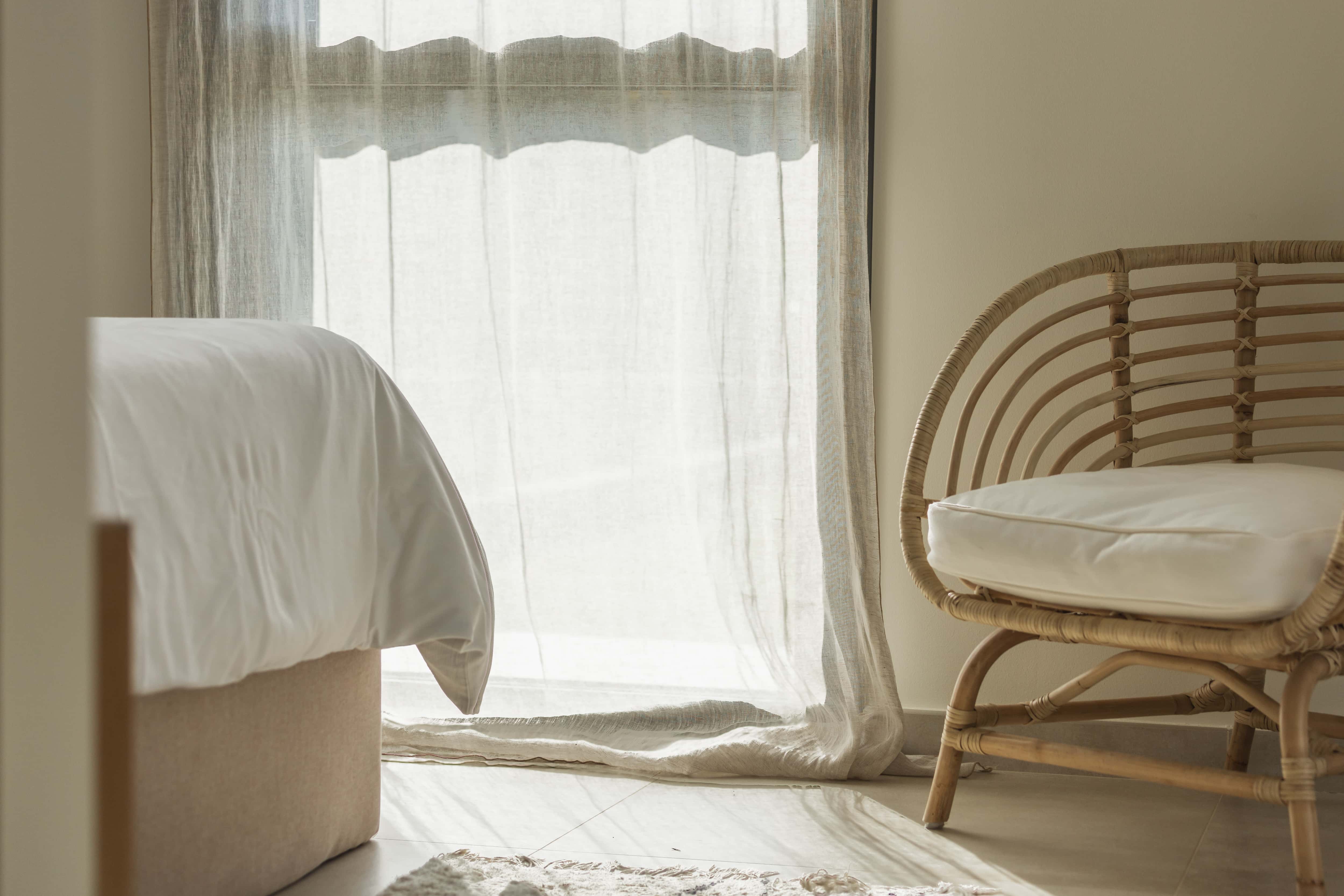 Para poder crear un entorno agradable en esta parte de la casa, podemos acabar de completar la decoración con cortinas de lino, cestas de mimbre que puedan hacer la función de maceta, para guardar mantas, almohadas o revistas y lámparas de fibras que evoquen a la naturaleza cuanto más grandes y vistosas, mejor.