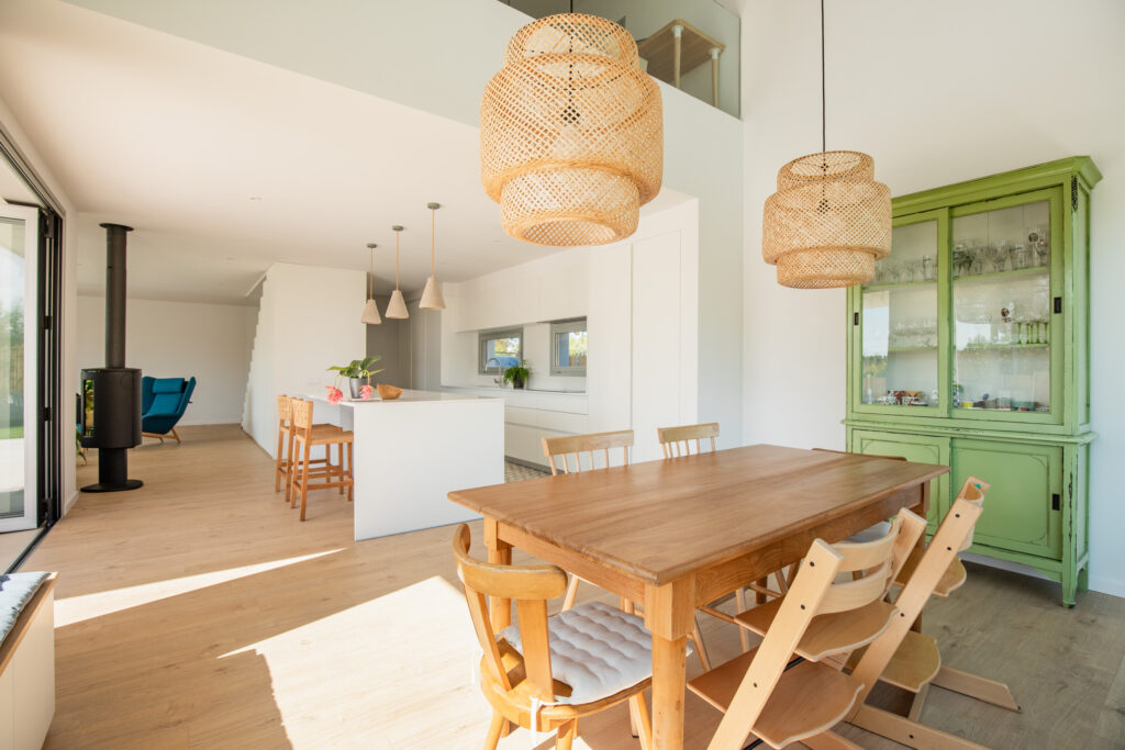 Este hogar, está pensado desde dentro hacia fuera. La orientación y la distribución de las diferentes estancias permiten disfrutar al máximo de la luz solar, así como de los espacios diáfanos que hacen de esta casa de dos plantas un refugio de confort y tranquilidad.