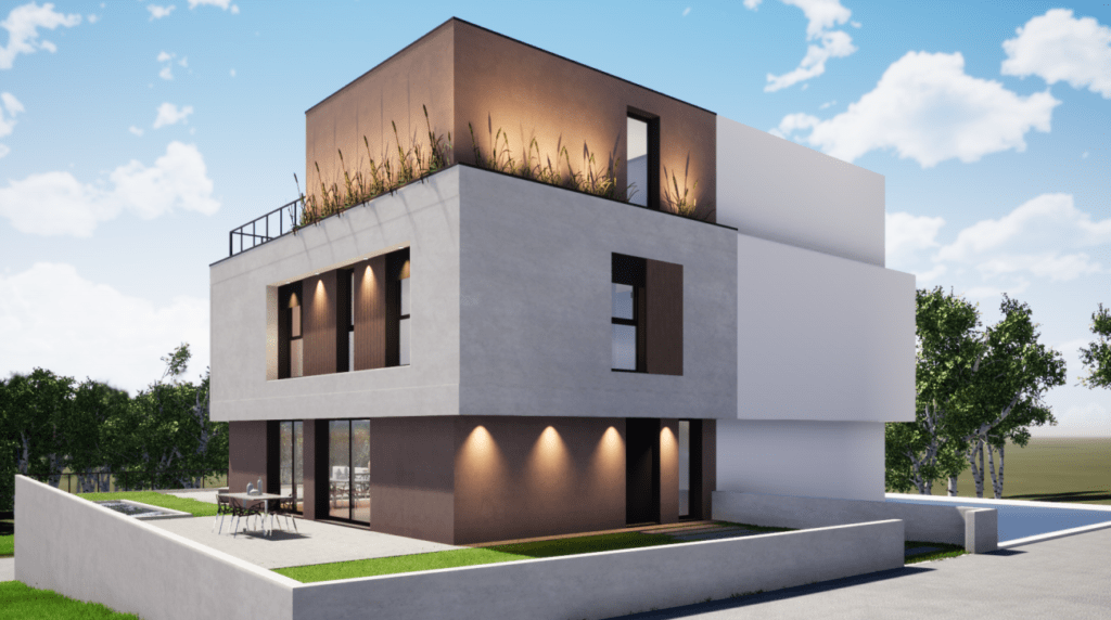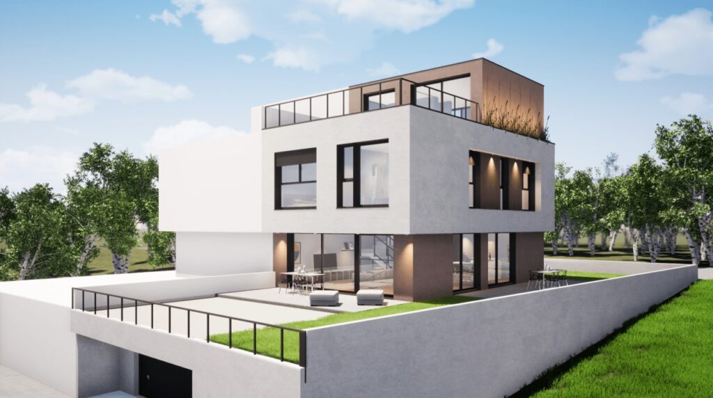 Por PMP / junio 26, 2023 La Farga Proyecto en estudio La Farga es un oasis de tranquilidad, una casa de cuatro plantas rodeada de jardín y piscina, con una amplia terraza en la segunda planta. Destaca su estilo vanguardista, con detalles color hierro que aportan personalidad. Desde 650.000€ ¿Empezamos? Casa a 3 vientos - proyecto en estudio Subterráneo, planta baja, planta primera y planta segunda. Total: 361,42 m2 Total con terraza: 413,84 m2