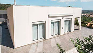 La Vistablava cuenta con la máxima calificación energética (A). Se ha conseguido gracias a la optimización de medidas a nivel pasivo y activo. A nivel pasivo: una correcta orientación, la minimización de aberturas a norte y maximización hacia el sur, así como la inercia térmica que poseen las paredes de hormigón. A nivel de sistema activo, la casa posee un sistema de aerotermia y suelo radiante y, además, lleva incorporado un recuperador de calor.