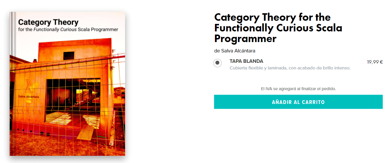 Alcántara acaba de auto-publicar la obra “Category theory for the functionally curious scala programmer” con el objetivo de cubrir los aspectos más relevantes de la «Teoría de las Categorías» desde el punto de vista de la programación funcional.
