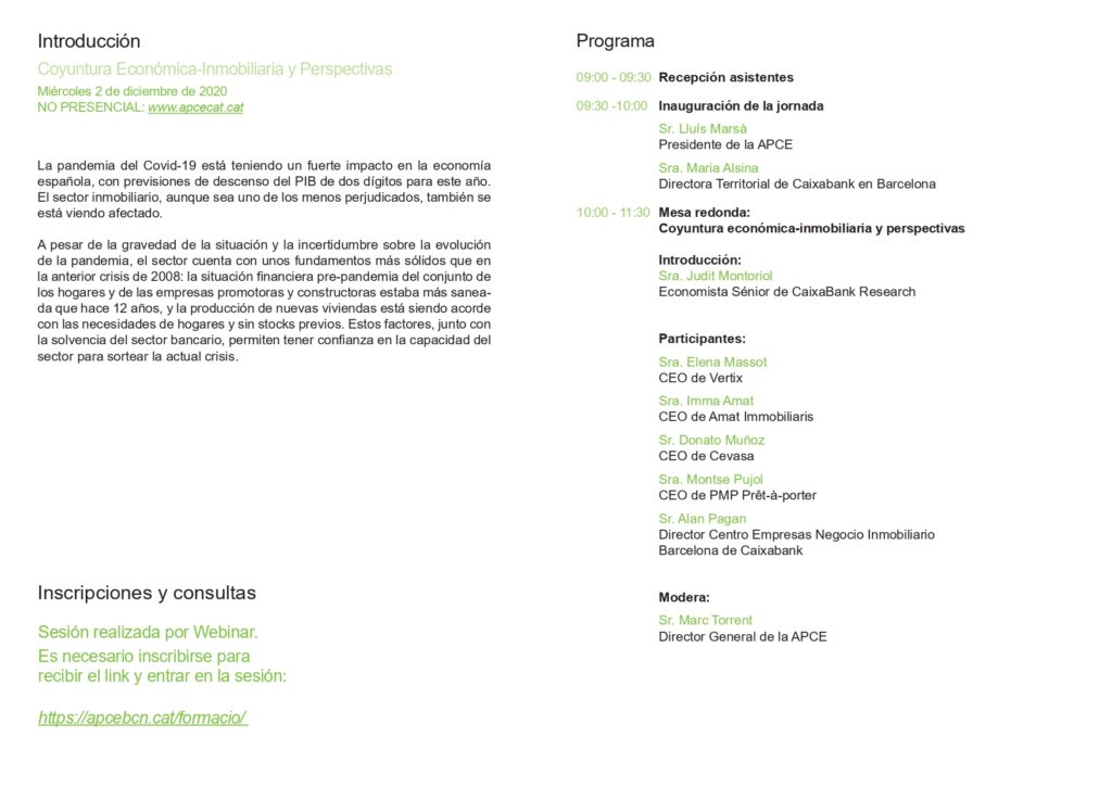 PMP participará en la jornada Coyuntura Económica-Inmobiliaria y Perspectivas organizada por la APCEC (Asociación de Promotores y Constructores de Edificios de Cataluña) el próximo miércoles 2 de diciembre de 2020 a las 10:00h.